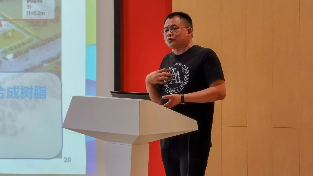 公司黃總在項(xiàng)目現(xiàn)場(chǎng),就該項(xiàng)目的保溫復(fù)合裝飾一體板工程特點(diǎn)和實(shí)際施工中的技術(shù)優(yōu)化與各位領(lǐng)導(dǎo)及專家成員進(jìn)行了分享和溝通。